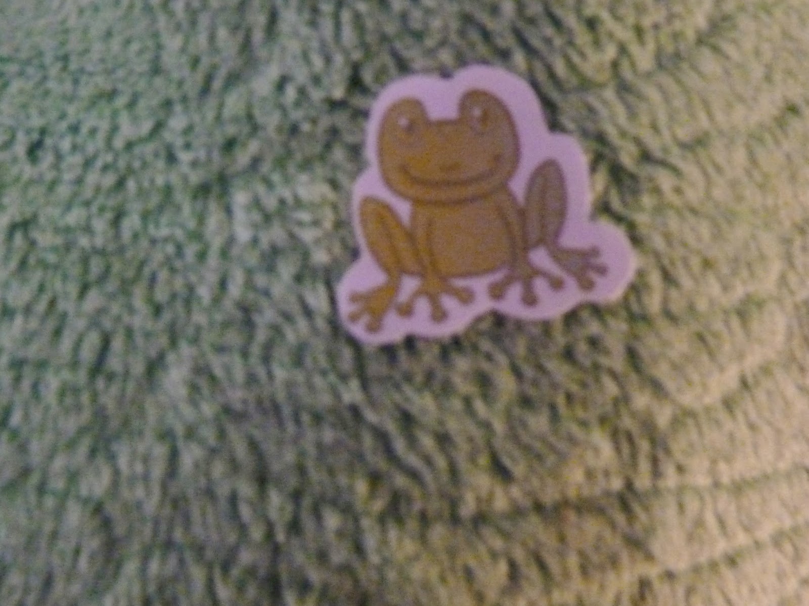 | Mr. Froggie had to get a shot so he got a sticker for being a bravie froggie. And of course he got a frog sticker! |